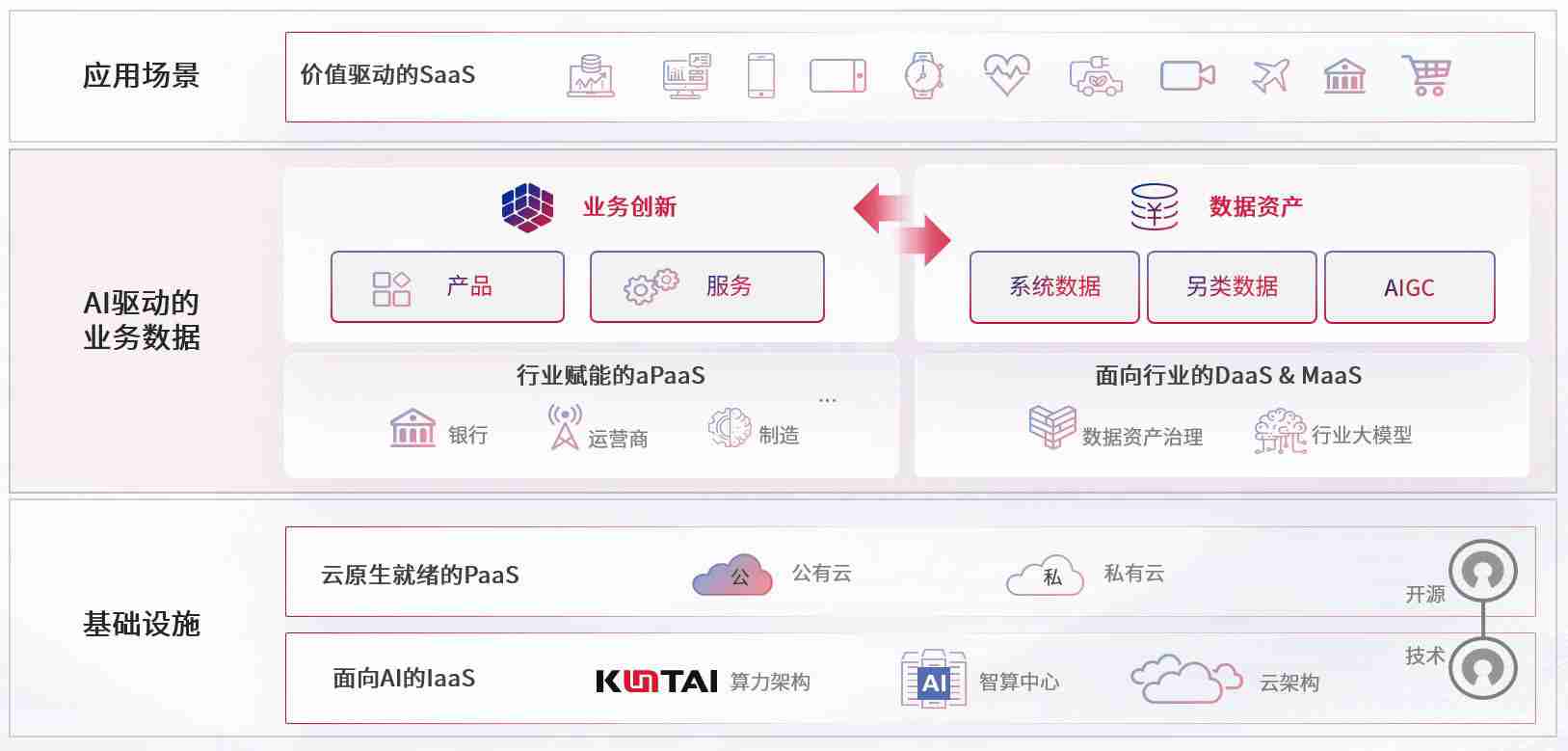 数字时代,,围绕企业数字化转型的关键要素,,,尊龙凯时人生就是搏数码开创性的提出数云融合战略和技术体系框架,,着力在云原生、、数字原生、、、AI原生和信创产业上架构产品和服务能力,,为处在不同数字化转型阶段的快消零售、、汽车、、、、金融、、、医疗、、政企、、教育、、运营商等行业客户提供泛在的敏捷IT能力和融合的数据驱动能力,,构建跨界融合创新的数字业务场景和新业务模式,,助力企业级客户建立面向未来的核心能力和竞争优势,,全面推动社会的数字化、、、、智能化转型升级。。。。